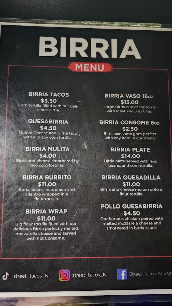 Welcome to Street Tacos Al Vapor, a hidden gem nestled in Las Vegas at 6145 W Cactus Ave. This drive-thru taco truck specializes in mouthwatering birria tacos that have earned rave reviews from customers.